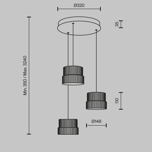 Размери: Височина: 350-3240мм, Диаметър: 400мм, Височина на чашките: 110мм, Диаметър на чашките: 148мм