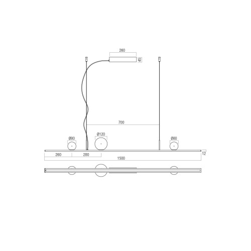 Оригинален пендел с модерен дизайн от серията Dune, изработен от алуминиево тяло с матово черно покритие с опал поликарбонатен разсейвател за директна светлина и три сферични чашки от опушено градиентно стъкло с вграден 48W 3000K LED. Тялото е с вграден димируем TRIAC драйвер. Стилна лампа, подходяща за осветлението във вашия хол, трапезария, офис, хотел и заведение.
