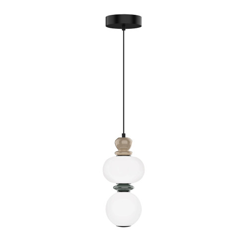 Модерен светодиоден пендел от серията Gemma, изработен от черен цвят метална основа и тяло, съставено от оригинални декоративни керамични детайли в сив и кафяв цвят с опал стъклени разсейватели и вграден 10W, 3000K LED. Стилно решение за комфортното осветление на вашия хол, трапезария, спалня, офис, хотел или заведение.