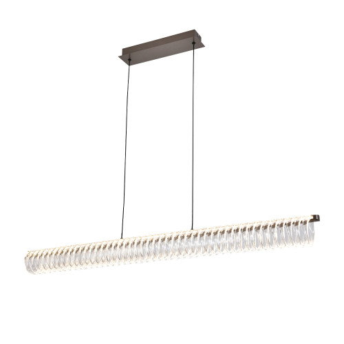 Модерен светодиоден пендел от серията Alba, изработен от сив цвят метална основа и линейно метално тяло с прозрачен акрилен разсейвател и вграден 39W, 3000К LED. Атрактивна лампа, подходяща за стилното осветление на вашия дом, офис, хотел и заведение.