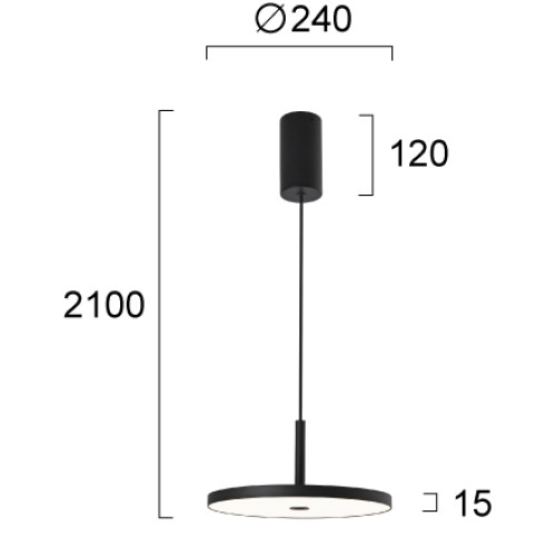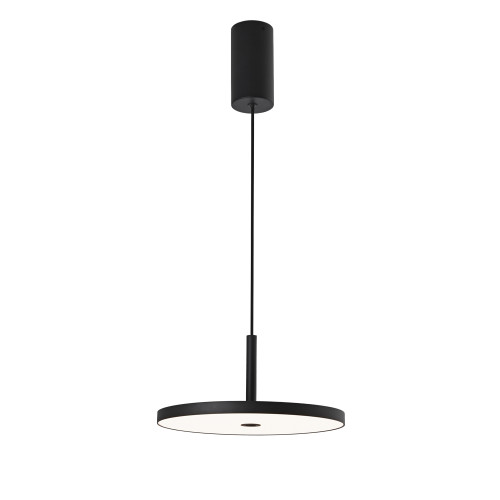 Стилен светодиоден пендел с модерен дизайн от серията Demy, изработен от черен цвят метална основа с кръгло плоско метално тяло и бял поликарбонатен разсейвател с вграден 19W, 3000К LED. Оригинално предложение за комфортното осветление във вашия хол, трапезария, офис, хотел и заведение.