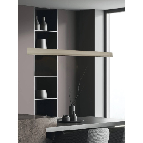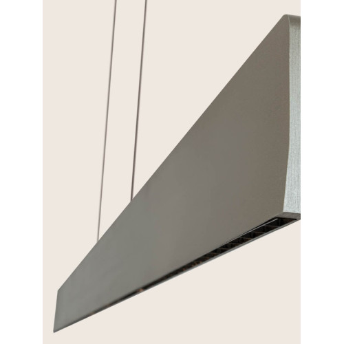 Съвременен светодиоден пендел с минималистичен дизайн, изработен от черен цвят метална основа и висящо линейно алуминиево тяло в матово сив цвят със силиконов разсейвател и вграден 40W, 3000K LED. Тялото е с димируем TRIAC драйвер. Стилно предложение за интериорното осветление на вашия хол, трапезария, спалня, офис, хотел и заведение.