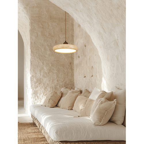 Оригинален светодиоден пендел с атрактивен дизайн, изработен от кафяв цвят дървена основа и висящо кръгло тяло от естествен камък с кафяв декоративен дървен детайл и вграден 22W, 3000K LED. Модерно решение за стилното и комфортно осветление на вашия хол, трапезария, спалня, хотел и заведение.