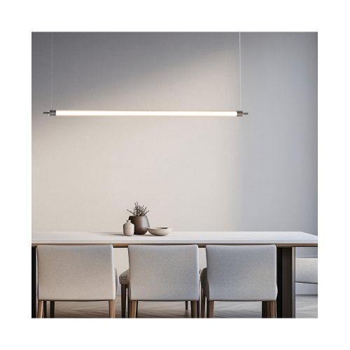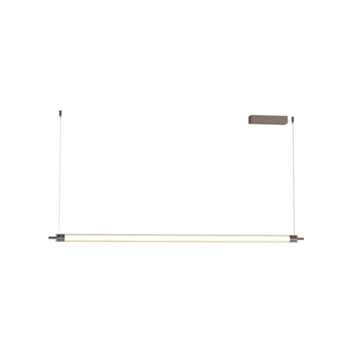 Стилен светодиоден пендел, изработен от цвят кафе метална основа и цилиндрично тяло от метал и прозрачно стъкло с акрилен разсейвател и вграден 33W, 3000К LED. Тялото е с димируем TRIAC драйвер. Модерна лампа, подходяща за качественото и комфортно осветление на вашия хол, трапезария, офис, хотел и заведение.