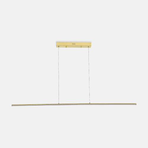 Стилен светодиоден пендел от серията Esero, изработен от златист цвят правоъгълна метална основа и висящо метално рамо с бял пластмасов разсейвател и вграден 20W, 4000K LED. Модерно решение за комфортното осветление на вашия хол, трапезария, хотел или заведение.