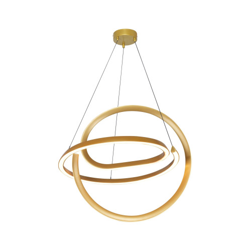 Стилен светодиоден пендел от серията Velenne, изработен от златист цвят метална основа с висящо извито метално тяло и бял силиконов разсейвател с вграден 40W, 3000K LED. Модерно решение за комфортното осветление на вашия хол, трапезария, спалня, коридор, хотел или заведение.
