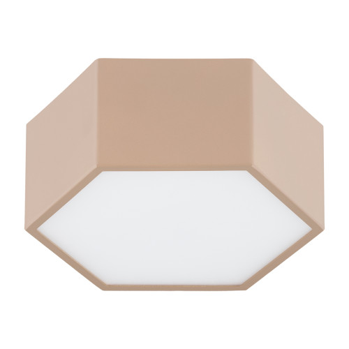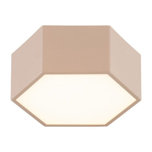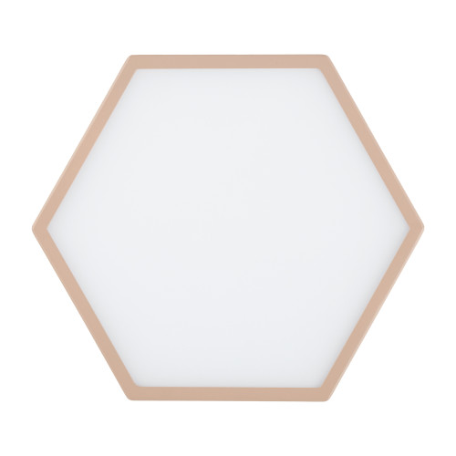 Стилен светодиоден плафон от серията Libero, изработен от розов цвят шестоъгълно метално тяло и бял мат стъклен разсейвател с вграден 12W LED, 3000K. Оригинално предложение за минималистичното интериорно осветление на вашия хол, трапезария, спалня, коридор, офис, хотел и заведение.