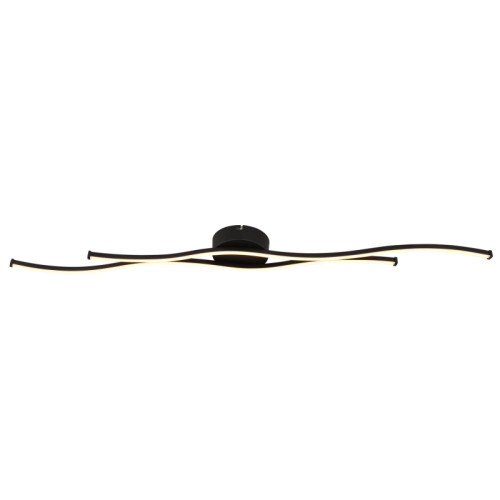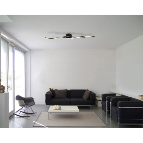 Стилен светодиоден плафон от серията Boyd, изработен от черен мат цвят метална основа и две спираловидно извити алуминиеви тела с бял пластмасов разсейвател и вграден 30W 3000К LED. Модерна лампа, подходяща за осветлението на вашия хол, трапезария, спалня, офис, хотел и заведение.