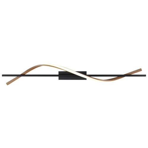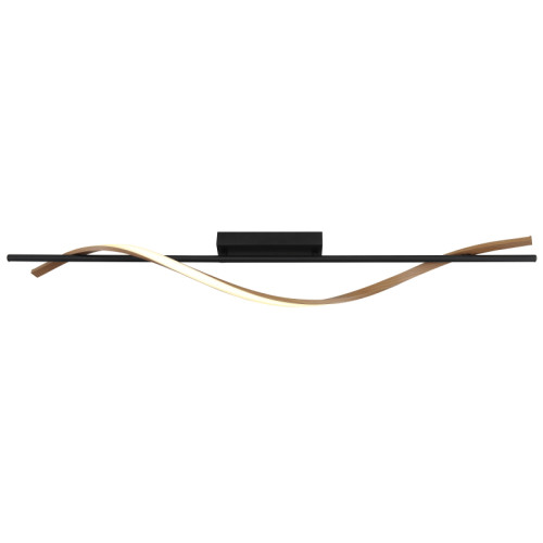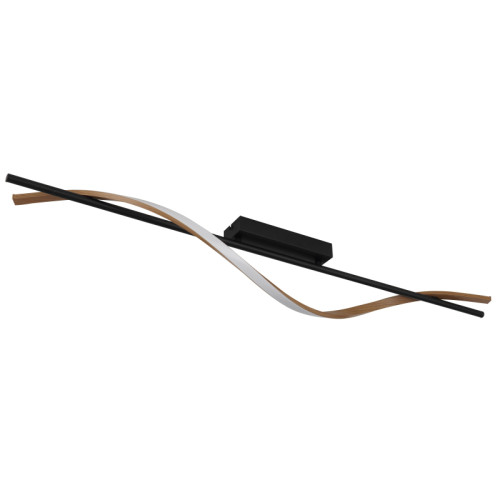 Модерен светодиоден плафон от серията Watkins, изработен от матово черен цвят метална основа и рамо с извито алуминиево тяло в кафяв цвят с дървесен ефект и бял пластмасов разсейвател с вграден 20.5W 3000K LED. Оригинално предложение за интериорното осветление на вашия хол, трапезария, хотел и заведение.