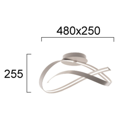 Модерен светодиоден плафон от серията Ribbon, изработен от бежов цвят метална основа и тяло от спираловидно извита метална лента и бял пластмасов разсейвател с вграден 26W 3000К LED. Оригинална лампа, подходяща за интериорното осветление на вашия хол, трапезария, спалня, хотел и заведение.