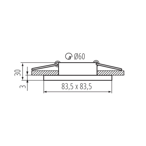 Размери: Широчина: 83,5мм х 83,5мм, Дебелина: 3мм, Дълбочина: 80мм, Размер на отвора: Ø60мм
