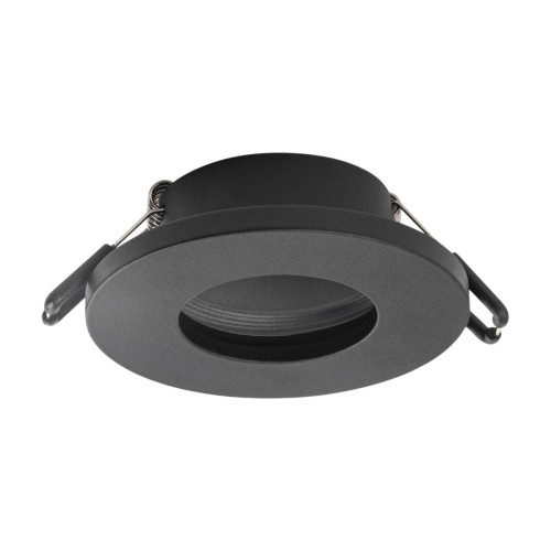 Модерна луна за вграждане от серията Finn, изработена от черен цвят кръгло метално тяло с прозрачен стъклен разсейвател и висока степен на влагозащита: IP44, подходяща за вашата баня и мокро помещение.