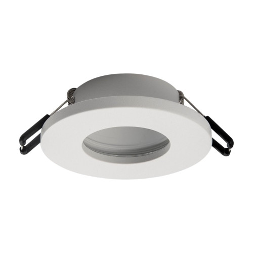 Модерна луна за вграждане от серията Finn, изработена от бял цвят кръгло метално тяло с прозрачен стъклен разсейвател и висока степен на влагозащита: IP44, подходяща за вашата баня и мокро помещение.