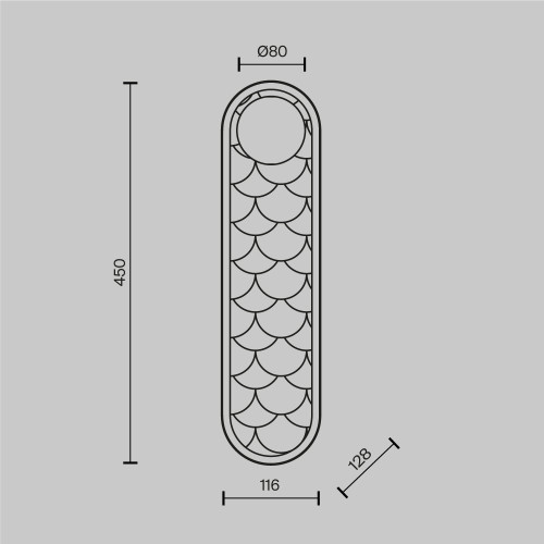 Размери: Височина: 450мм, Широчина: 116мм, Разстояние от стената: 128мм, Диаметър на чашката: 80мм