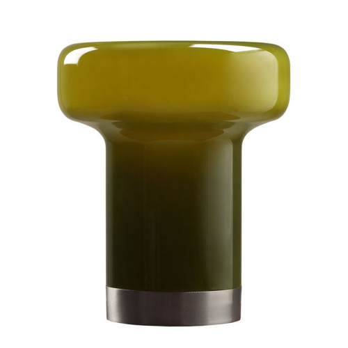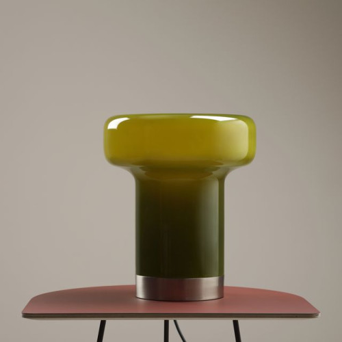 Модерна настолна лампа на дизайнера Mikołaja Nicera от серията Bonbon, изработена от цвят никел кръгла метална основа и чашка от зелено опалово стъкло на цокъл Е14. Стилна лампа, подходяща за оригиналното и комфортно осветление на вашия хол, трапезария, спалня, хотел и ресторант.