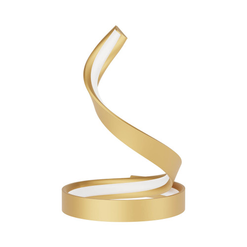 Стилна светодиодна настолна лампа с оригинален дизайн от серията Torsion, изработена от матово златист цвят метална основа с алуминиево тяло в спираловидна форма и опал бял силиконов разсейвател с вграден 11W LED и възможност за избор на цветната температура: 2700K/3000K/4000К. Тялото е с вграден димер с докосване. Модерният избор за интериорното осветление на вашия хол, трапезария, спалня, кабинет, хотел или заведение.
