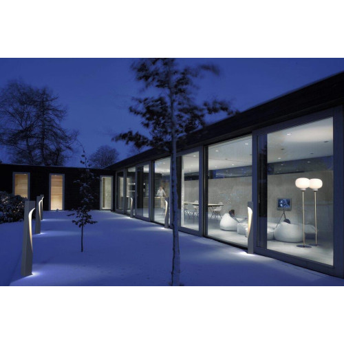 Модерен градински стълб с висока степен на влагозащита IP44, изработен от цвят антрацит алуминиево тяло с оригинална геометрична форма и прозрачен пластмасов разсейвател. Атрактивно предложение за външното осветление на парка, алеята и градината във вашия стилен дом, вила, хотел и заведение.