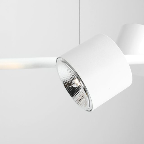Съвременен пендел със стилен дизайн от серията Bot, изработен от бял цвят метална основа с висящо рамо и четири цилиндрична форма подвижни метални глави на цокъл GU10. Качествена лампа, подходяща за функционалното осветление на вашия хол, трапезария, спалня, офис, хотел и заведение.