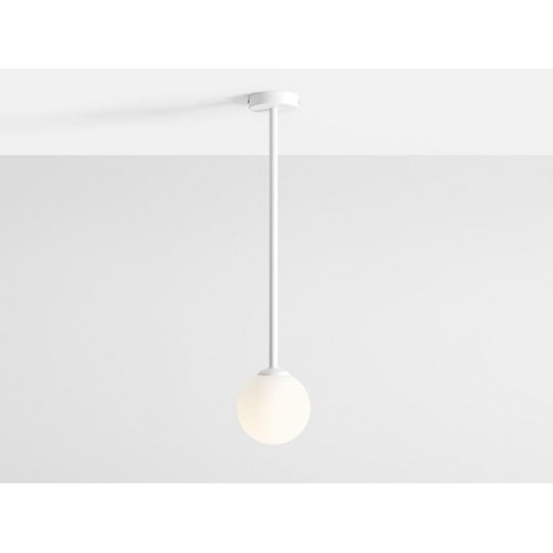 Модерен пендел с минималистичен дизайн от серията Pinne, изработен от бял цвят метална основа с дълго рамо и бял цвят сферична стъклена чашка на цокъл Е14. Оригинално предложение за комфортното и стилно осветление на вашия хол, трапезария, спалня, офис, хотел и заведение.