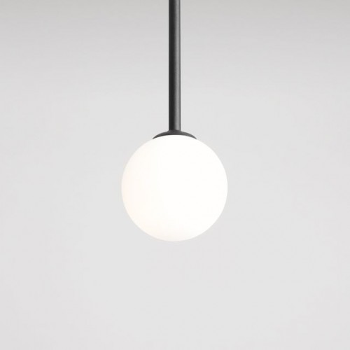 Модерен пендел с минималистичен дизайн от серията Pinne, изработен от черен цвят метална основа с дълго рамо и бял цвят сферична стъклена чашка на цокъл Е14. Оригинално предложение за комфортното и стилно осветление на вашия хол, трапезария, спалня, офис, хотел и заведение.
