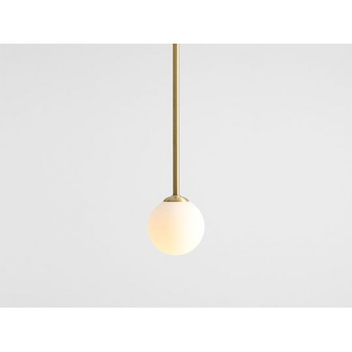 Модерен пендел с минималистичен дизайн от серията Pinne, изработен от цвят месинг метална основа с дълго рамо и бял цвят сферична стъклена чашка на цокъл Е14. Оригинално предложение за комфортното и стилно осветление на вашия хол, трапезария, спалня, офис, хотел и заведение.