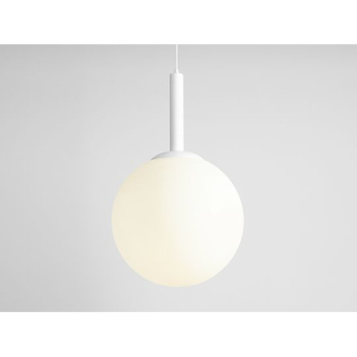 Елегантен пендел в минималистичен стил от серията Bosso, изработен от бял цвят метална основа и матово бял цвят сферична стъклена чашка на цокъл Е27. Модерно предложение за комфортно осветление на вашия хол, трапезария, спалня, хотел и заведение.