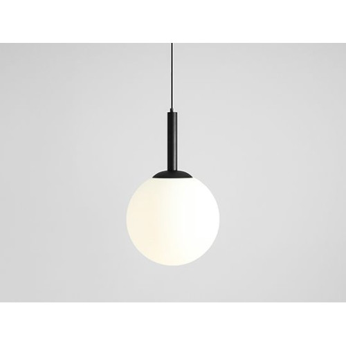 Елегантен пендел в минималистичен стил от серията Bosso, изработен от черен цвят метална основа и матово бял цвят сферична стъклена чашка на цокъл Е27. Модерно предложение за комфортно осветление на вашия хол, трапезария, спалня, хотел и заведение.