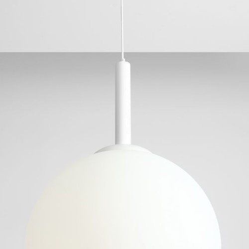 Елегантен пендел в минималистичен стил от серията Bosso, изработен от бял цвят метална основа и матово бял цвят сферична стъклена чашка на цокъл Е27. Модерно предложение за комфортно осветление на вашия хол, трапезария, спалня, хотел и заведение.