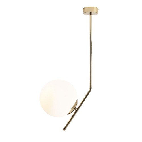 Оригинален пендел с модерен дизайн от серията Gallia, изработен от златист цвят метална основа и рамо с матово бял цвят сферична стъклена чашка на цокъл Е27. Стилно решение за комфортно осветление на вашия хол, трапезария, спалня, хотел и заведение.