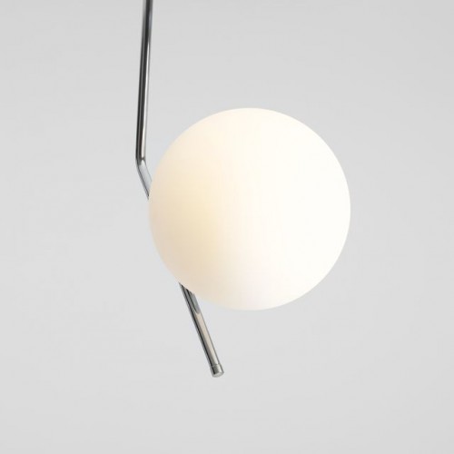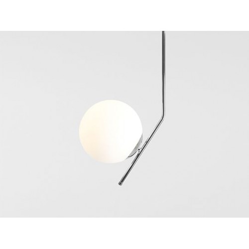 Оригинален пендел с модерен дизайн от серията Gallia, изработен от цвят хром метална основа и рамо с матово бял цвят сферична стъклена чашка на цокъл Е27. Стилно решение за комфортно осветление на вашия хол, трапезария, спалня, хотел и заведение.