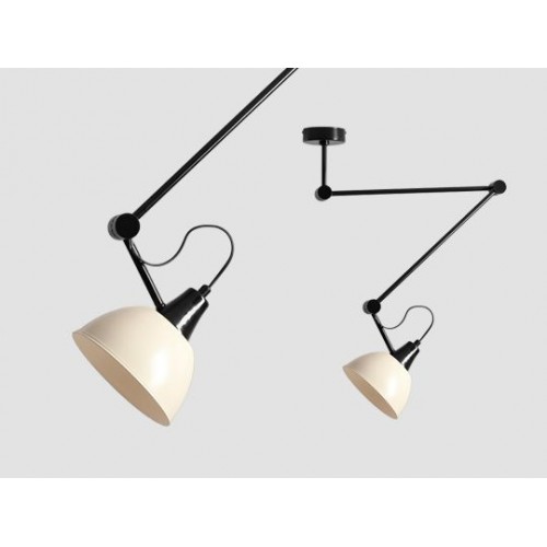 Функционален пендел в индустриален стил от серията Aida, изработен от черен цвят метална основа с разгъващи се рамена и метална чашка в кремав цвят отвън и бял във вътрешността на цокъл Е27. Модерно решение за комфортното и стилно осветление на вашия хол, спалня, офис, хотел и заведение.