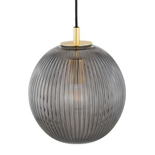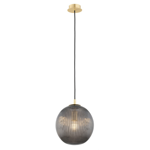 Стилен пендел от серията Paloma, изработен от кръгла месингова основа и сферична форма чашка от опушено набраздено стъкло. Изискано предложение за качественото и комфортно осветление на вашия хол, трапезария, спалня, хотел и ресторант.