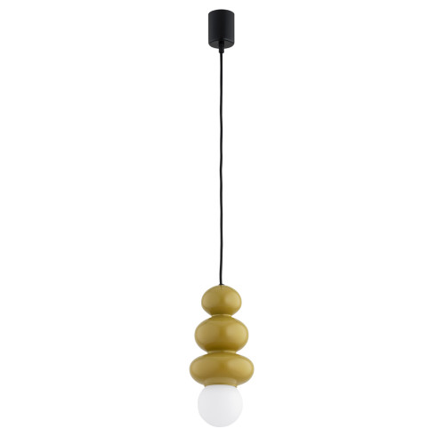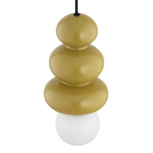 Стилен пендел с модерен дизайн от серията Orlando Plus, изработен от метална основа и оригинална форма стъклено тяло в жълт цвят с опал мат сферична стъклена чашка на цокъл G9. Оригинална висяща лампа с висока степен на влагозащита: IP44, подходяща за комфортното осветление на вашия хол, трапезария, спалня, баня, хотел и заведение.