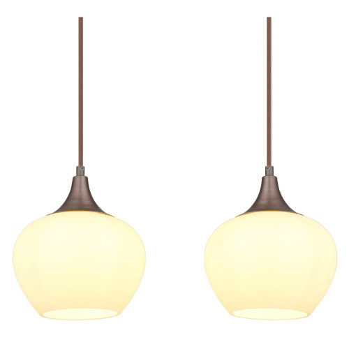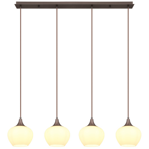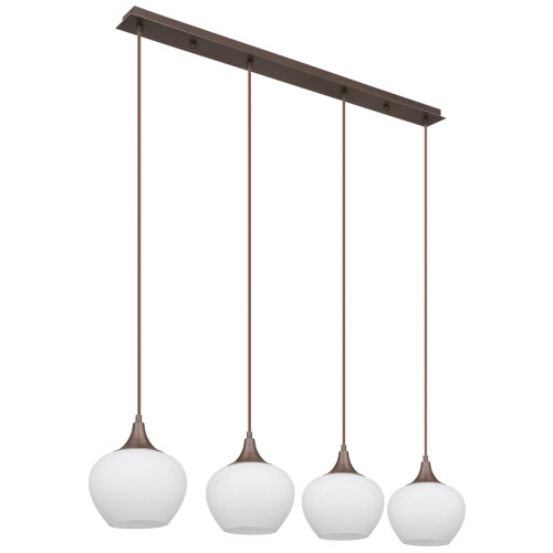 Елегантен пендел с модерен дизайн от серията Maxy, изработен от кафяв цвят метална основа и четири куполовидна форма стъклени чашки в цвят опал. Оригинално решение за интериорното осветление във вашия хол, трапезария, хотел и ресторант.