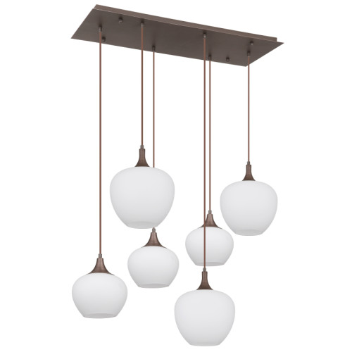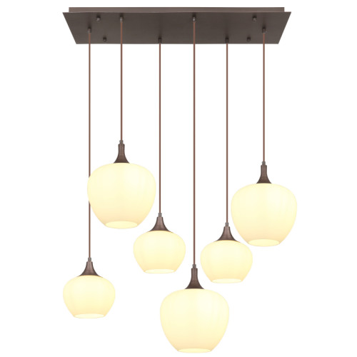 Елегантен пендел с модерен дизайн от серията Maxy, изработен от кафяв цвят метална основа и шест куполовидна форма стъклени чашки в цвят опал. Оригинално решение за интериорното осветление във вашия хол, трапезария, хотел и ресторант.