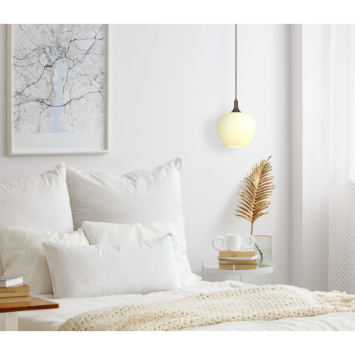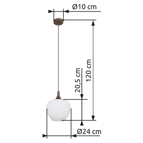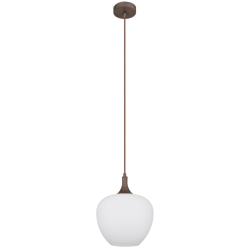Елегантен пендел с модерен дизайн от серията Maxy, изработен от кафяв цвят метална основа и куполовидна форма стъклена чашка в цвят опал. Оригинално решение за интериорното осветление във вашия хол, трапезария, хотел и ресторант.