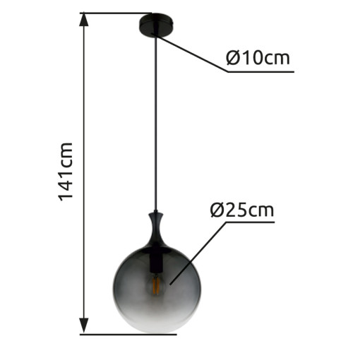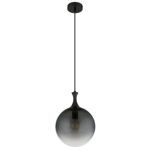 Стилен пендел от серията Dalton, изработен от черен цвят кръгла метална основа и опушена стъклена чашка. Модерно решение за комфортното осветление във вашия хол, трапезария, хотел и ресторант.