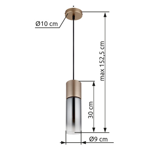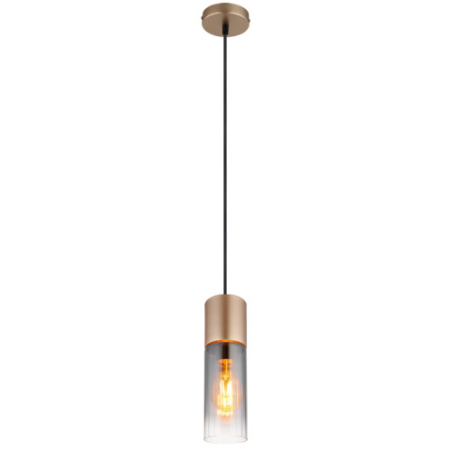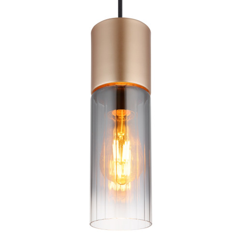 Стилен пендел от серията Annika, изработен от матово златист цвят метална основа и цилиндрична форма опушена стъклена чашка. Модерно решение за комфортното осветление на вашия хол, трапезария, спалня, хотел и заведение.