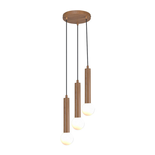 Модерен пендел с минималистичен дизайн от серията Filano, изработен от кафяв цвят, имитиращ натурално дърво метална основа и три цилиндрични метални тела с опал стъклени разсейватели в сферична форма. Стилно решение за осветлението на вашия хол, трапезария, спалня, хотел и ресторант.