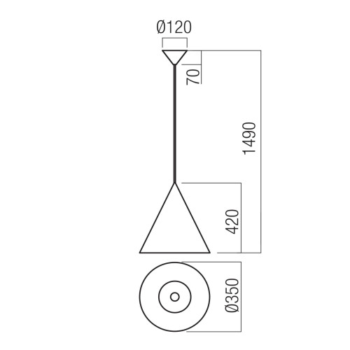Оригинален пендел от серията Konos, изработен от алуминиева основа и конусовидна форма алуминиева ша..