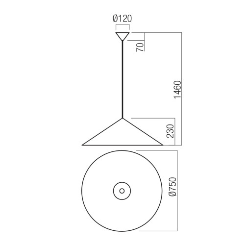 Оригинален пендел от серията Konos, изработен от алуминиева основа и конусовидна форма алуминиева ша..
