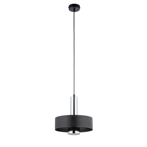 Оригинален пендел с минималистичен дизайн от серията Rif Lux, изработен от черен цвят кръгла стоманена основа и стоманена глава в сребрист цвят с декоративна черна стоманена чашка в цилиндрична форма. Модерно предложение за стилното осветление във вашия хол, трапезария, спалня, хотел и заведение.