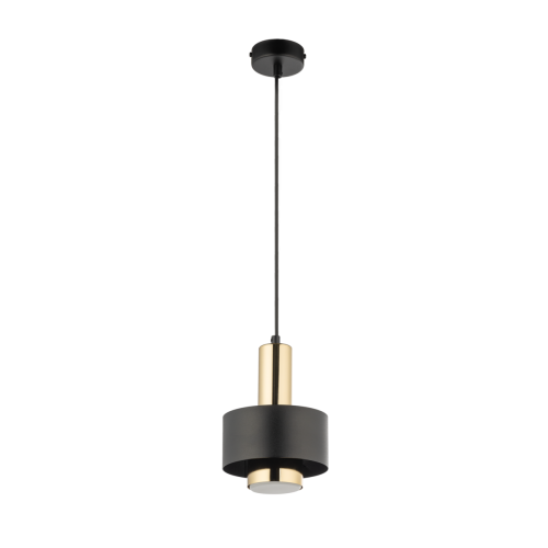 Оригинален пендел с минималистичен дизайн от серията Rif Lux, изработен от черен цвят кръгла стоманена основа и стоманена глава в златист цвят с декоративна черна стоманена чашка в цилиндрична форма. Модерно предложение за стилното осветление във вашия хол, трапезария, спалня, хотел и заведение.