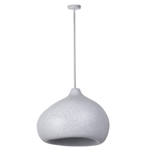 Оригинален пендел от серията Mauro, изработен от кръгла стоманена основа и асиметрична куполовидна шапка от минерален композит в светло сив цвят на петна. Модерна висяща лампа, която ще изпълни с комфорт и мека светлина вашия хол, трапезария, спалня, хотел и заведение.
