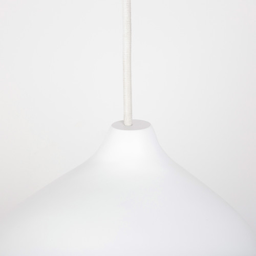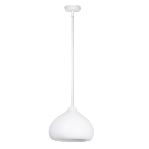 Оригинален пендел от серията Mauro, изработен от кръгла стоманена основа и асиметрична куполовидна шапка от минерален композит в бял цвят. Модерна висяща лампа, която ще изпълни с комфорт и мека светлина вашия хол, трапезария, спалня, хотел и заведение.