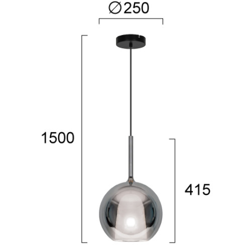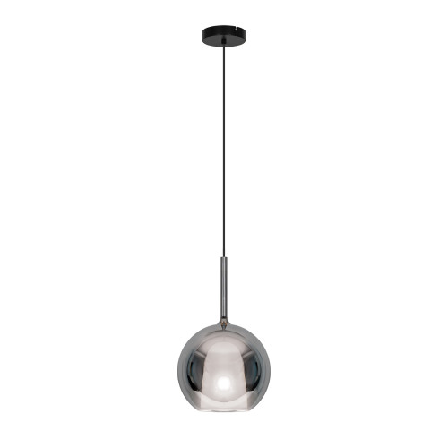 Стилен пендел с модерен дизайн от серията Ramona, изработен от черен цвят метална основа и сферична огледална стъклена чашка в цвят хорм отвът и бял във вътрешността. Оригинална лампа, подходяща за комфортното осветление на вашия хол, трапезария, спалня, хотел и заведение.