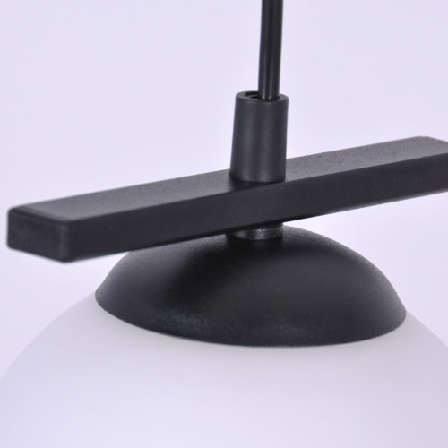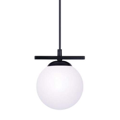 Модерен пендел със стилен дизайн от серията Globe, изработен от черен цвят метална основа и бял цвят стъклен разсейвател в сферична форма. Качествена лампа, подходяща за комфортното осветление във вашия хол, трапезария, спалня, хотел или заведение.