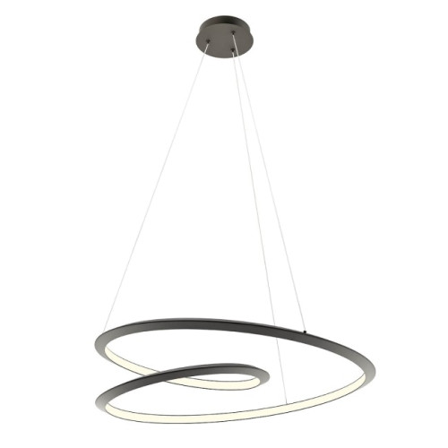 Съвременен светодиоден пендел от серията Storm, изработен от кръгла метална основа и висящо спираловидно извито алуминиево тяло в матово черен цвят с бял PVC разсейвател. Лампа с вграден 3-степенен димер и възможност за избор на цветната температура от 3000К до 6000K. Стилно предложение за интериорното осветление на вашия хол, трапезария, офис, хотел или заведение.