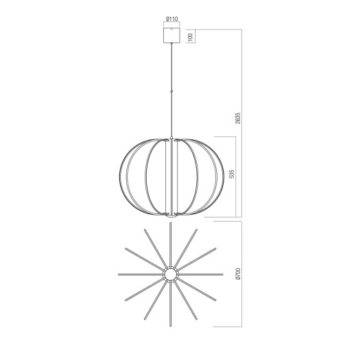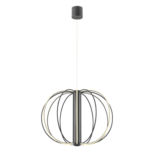 Оригинален светодиоден пендел от серията Moss, изработен от матово черен цвят метална основа и висящо сферично тяло от извити алуминиеви ленти с опал бял силиконов разсейвател и оптика под ъгъл от 120° с вграден 72W, 3000К LED. Тялото е с вграден димируем TRIAC драйвер. Модерно предложение за комфортното и стилно осветление на вашия хол, трапезария, спалня, хотел и заведение.