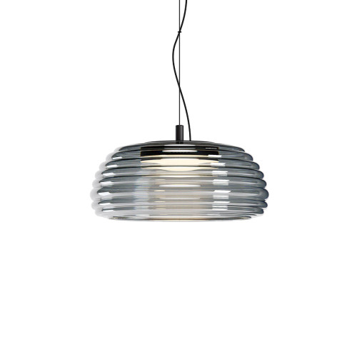 Стилен светодиоден пендел с оригинален дизайн от серията Ondula, изработен от матово черен цвят метална основа и опушен цвят оребрен издухан стъклен разсейвател с вграден 20W LED и възможност за избор на цветната температура: 2700K/3000K. Тялото е с вграден димируем TRIAC драйвер. Модерният избор за интериорното осветление на вашия хол, трапезария, спалня, хотел или заведение.